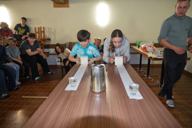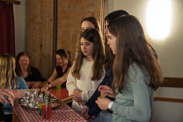 Auch am Abend wurde es nie langweilig. Die Lagerolympiade sorgte für viel Bewegung und Teamgeist. Beim Casinoabend wurde mit grosser Begeisterung gespielt und bei «Wetten, dass?» zeigten alle überraschende Talente. Ein besonderer Höhepunkt war das Nachtskifahren am Donnerstag. Die beleuchteten Pisten sorgten für eine ganz besondere Stimmung und machten diesen Abend unvergesslich. Wer lieber im warmen Lagerhaus blieb, löste gemeinsam knifflige Aufgaben im Escape Room und kam dem geheimnisvollen Museumsrätsel Schritt für Schritt näher.
