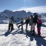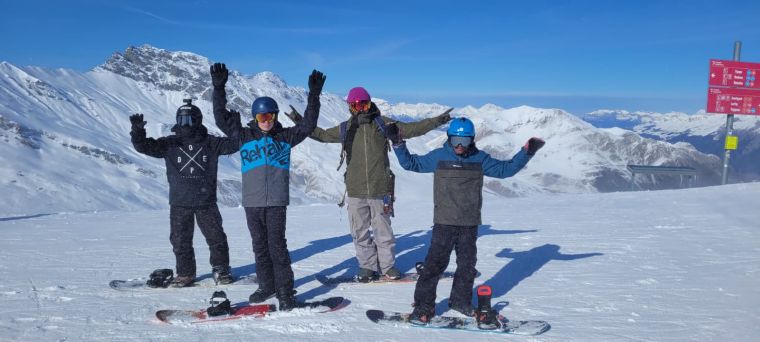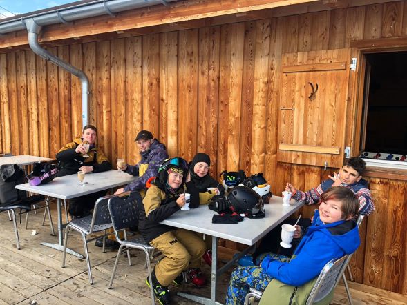 Ab Montag wurden die Pisten erobert. Die Kinder machten grosse Fortschritte und bald kurvten alle sicher mit Skiern oder Snowboard die Hänge hinunter. Wir genossen traumhaftes Wetter und bestens präparierte Pisten, auch wenn nur die beschneiten Abschnitte befahren werden konnten. Dreimal nahmen wir das Mittagessen direkt im Skigebiet ein und genossen Sandwiches, Äpfel und Riegel an der Sonne. Währenddessen arbeitete das Küchenteam im Hintergrund mit grossem Einsatz und rüstete stundenlang Nüsslisalat.